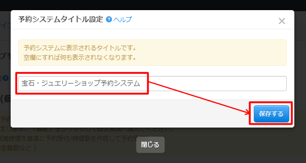 予約システムタイトル設定モーダルが表示されますので、入力欄に記載の内容を変更します。