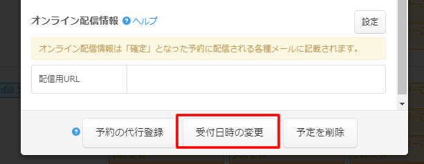 定員数を増やしたい、減らしたい場合には「受付日時の変更」から