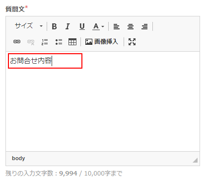 問合せ内容の下にある返信フォームより返信内容を記入します。
