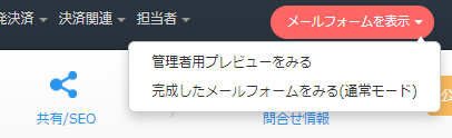 編集フォームの右上「メールフォームを表示」から作成したフォームを確認することができます。