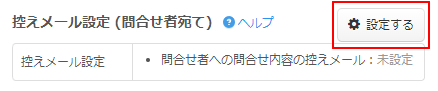 控えメール設定 (問合せ者宛て)の「設定する」をクリックします。