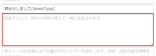 質問文引用プレースホルダーは、このメールフォームに設置されている一番最初の「文章回答」質問へのお客様ご入力内容が反映されます。追加問合せへの対応時は、追加問合せのご質問内容が反映されます。