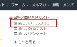 上部メニュー「フォーム」→「簡易メニュー/メールフォームを作成」をクリックします。
