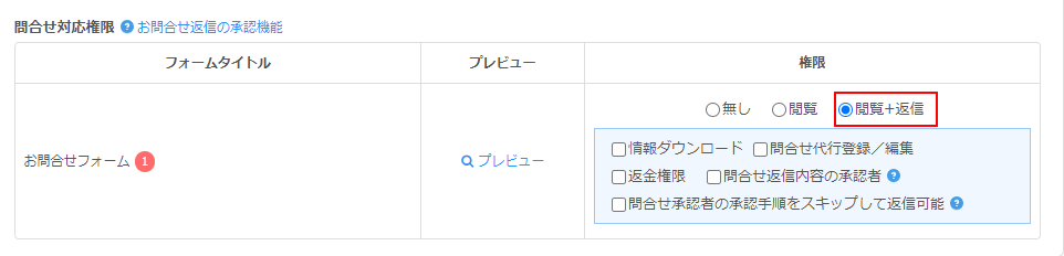 「閲覧+返信」でお問合せへの返信まで可能になります。