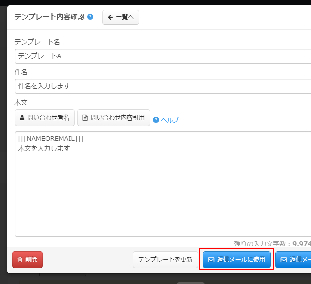 問合せの返信でよく使う内容をテンプレートとして保存しておき、返信時に利用できるテンプレート機能があります。