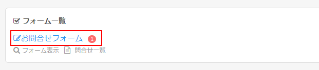 上部メニュー「フォーム」→「回答/問い合せリスト/該当フォームタイトル」をクリックします。
