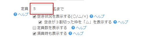 定員にはこのレッスンで受付可能な人数(定員数)を設定します。