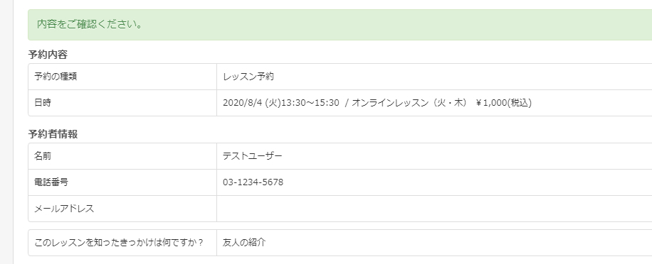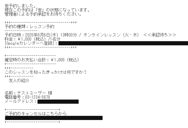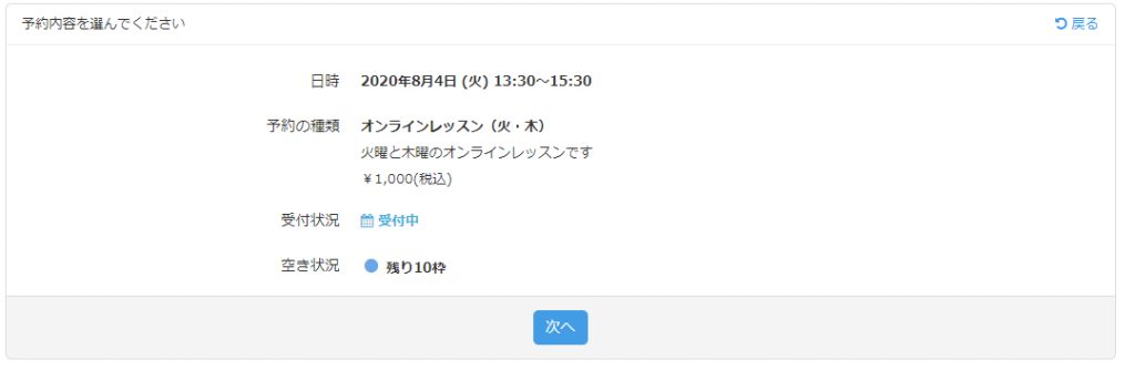 英会話、ヨガ、音楽などオンラインレッスンの予約受付されるケースでは参考になるかと思います。