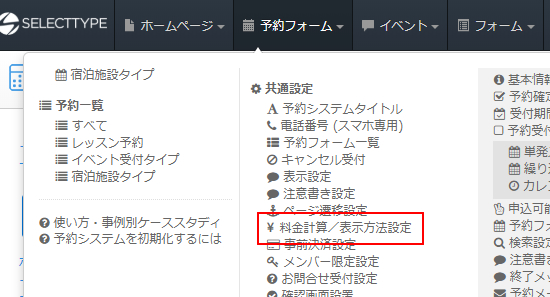 Stripeアカウントとの連携が出来たら予約システムにて決済機能を使用できるように設定します。