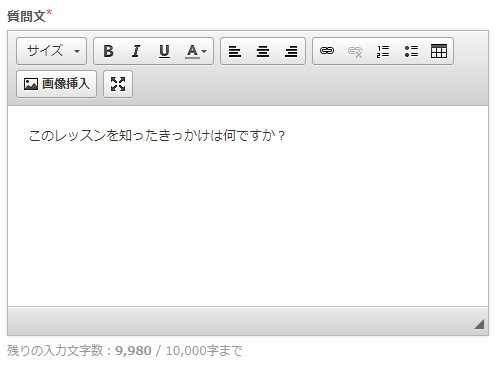 質問文に「このレッスンを知ったきっかけは何ですか?」などを登録します。