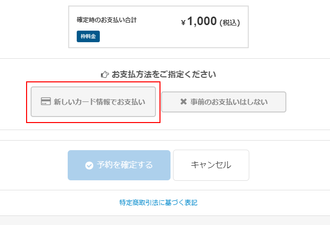 決済機能を利用していますと確認画面でお支払い情報を入力します。