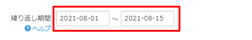次に繰り返し期間で受付枠を設置する範囲を指定します。