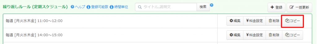 先程作成した繰り返しルールの「コピー」ボタンをクリックしますとコピー元の設定が維持された状態で登録モーダルが表示されますので、