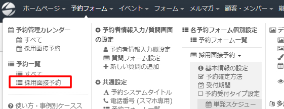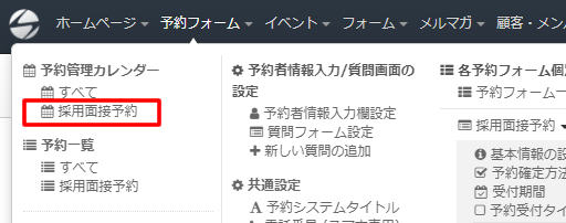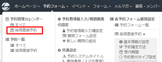 作成された予約フォームを見ると「採用面接予約」というタイトルや
