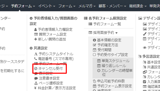 キャンセル受付設定は予約フォーム毎に設定が可能です。