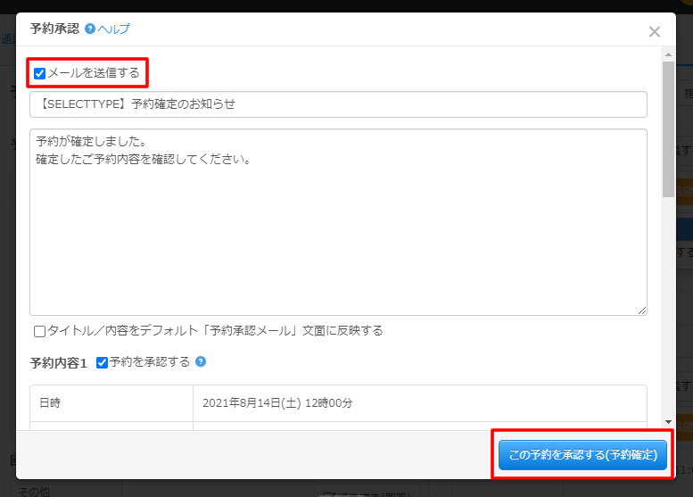 問題なければ「この予約を承認する(予約確定)」をクリックしますと