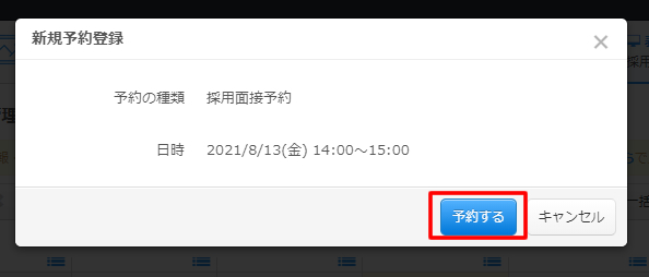 面接のご予約を電話で受付した情報も管理画面から代行登録することができます。