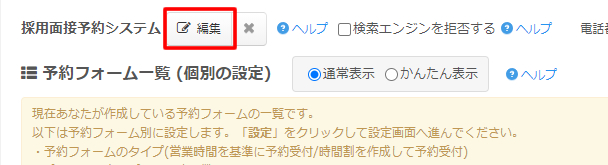 予約システムタイトルの設定エリアが表示されますので「編集」をクリックします。