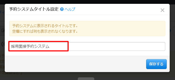 予約システムタイトル設定モーダルが表示されますので、入力欄に記載の内容を変更します。