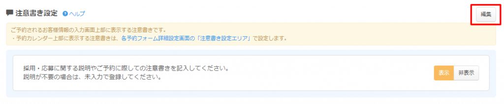 注意書き設定エリアが表示されるので「編集」ボタンをクリックします。