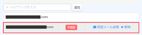 メールアドレス追加登録フォームより追加したら、「未認証」として登録されリストに追加されます。