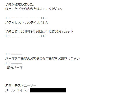 確定されると予約者には控えメール、管理者には通知メールが届きます。
