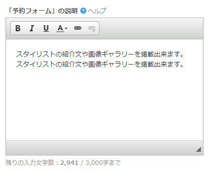 「予約フォームの説明」にはスタイリストの紹介文を登録します。