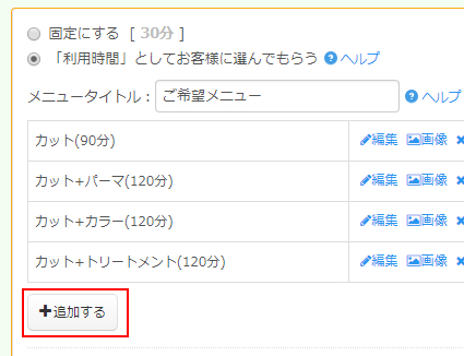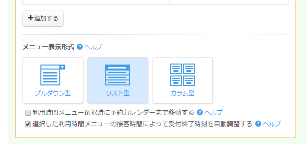またお客様が予約時に選択するメニューを設定することも可能です。