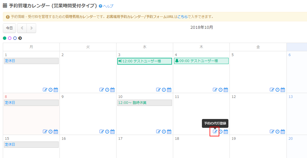 登録は予約管理カレンダーにて行います。