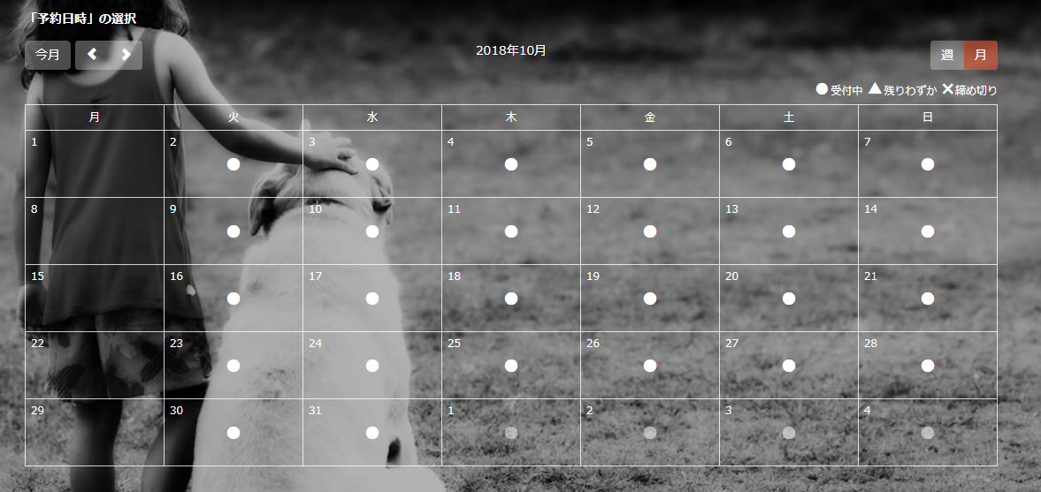 予約管理用のカレンダーが表示されます。