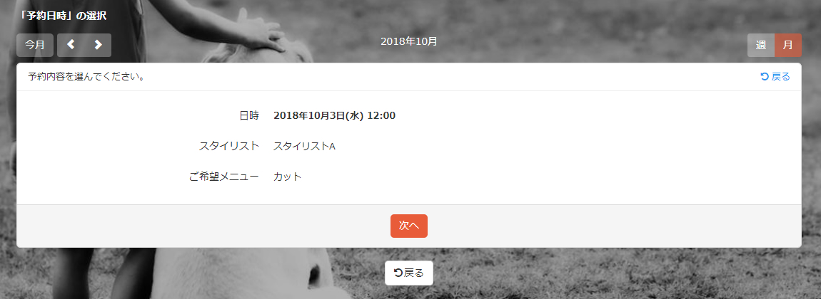 やり直したい場合は初期化して最初からやり直すことも出来ます。初期化方法は予約システムの初期化方法をご参照ください。