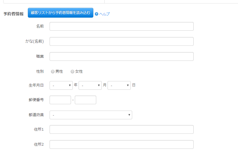 ご予約される方が2回目以降で顧客リストに情報が登録されている場合には
