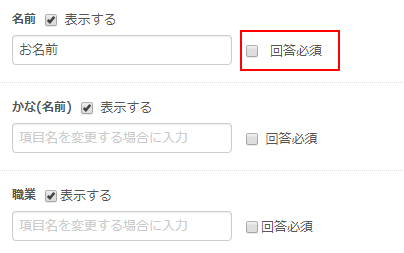 希望者のみ回答して頂くようにするので、回答必須設定はオフにしておきます。
