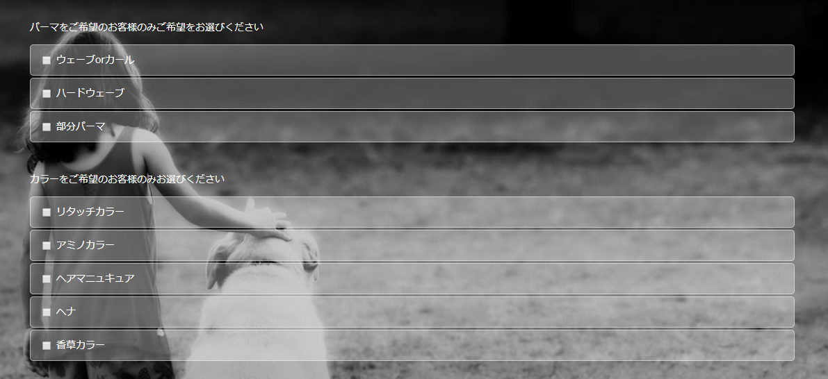 カラムメニューが予約フォームに反映されます。