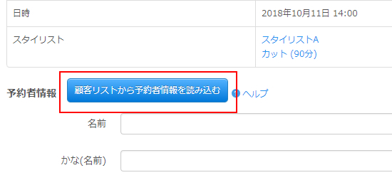 「顧客リストから予約者情報を読み込む」をクリックしすると