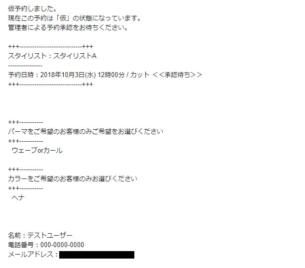 承認制の場合には、「予約控えメール」が届きます。