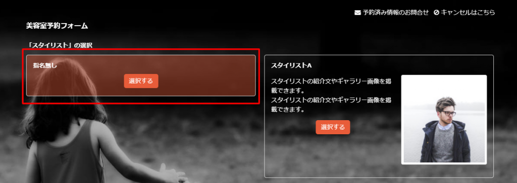 今回ご紹介します美容室・ヘアサロンの予約フォームは「スタッフ指名タイプ」を使用して、