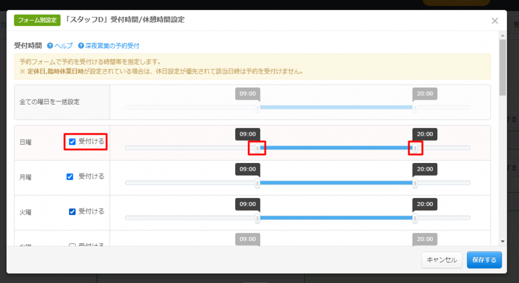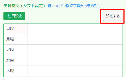 受付時間は曜日毎に設定をします。