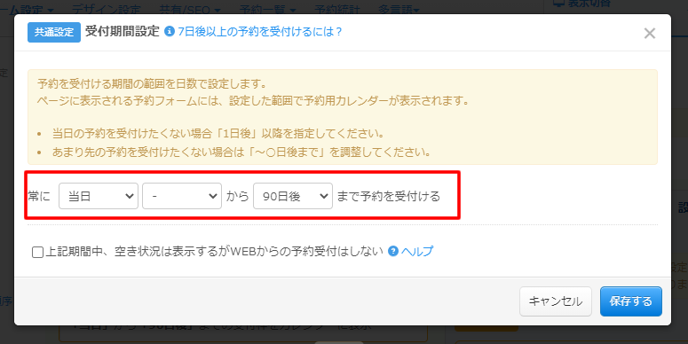 予約受付を始めると、臨時で受付をストップしたい日や時間帯がでてくることもあると思います。
