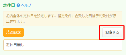 「設定する」ボタンから受付時間・休憩時間の設定画面を表示できます。
