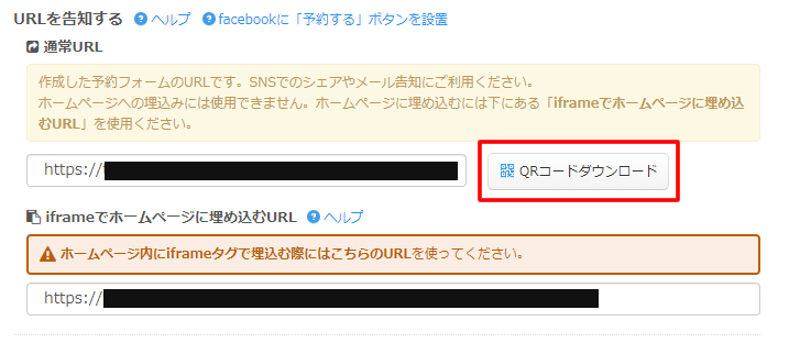 記載されたURLの横にある「QRコードダウンロード」ボタンよりQRコード画像をダウンロードすることも可能です。