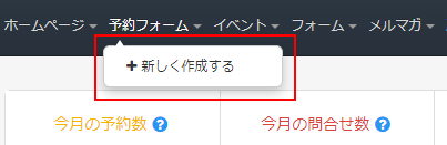 管理者マイページから作成するには、マイページ上部メニューの「予約フォーム」から「新しく作成する」をクリックします。