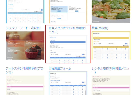 今回は「営業時間タイプ」のテンプレートの中から「音楽スタジオ予約(利用時間メニュー)」のテンプレートを選びます。