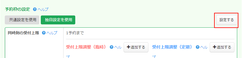 同じ画面の「予約時刻の単位」設定欄へ移動します。「設定する」ボタンをクリックします。