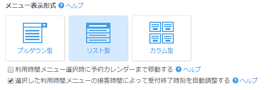 続いてご利用時間を選択できるメニューが表示されます。メニューの表示形式は切り替え可能です。