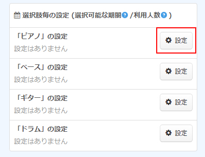 続いて詳細画面にて選択肢にご利用人数メニューを設置します。選択肢毎の設定の「設定」ボタンをクリックします。