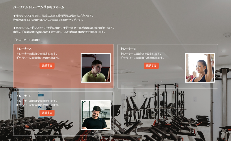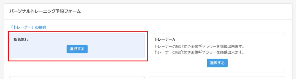 トレーナー・コーチの選択が必要ない場合、「パーソナルトレーニング予約フォーム」などを登録します。