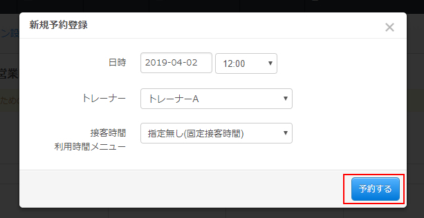 新規予約登録画面が表示されます。