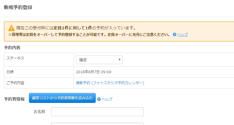 予約者の情報はフォームに直接入力する方法と顧客リストに登録のある場合には、その情報を読み込むこともできます。