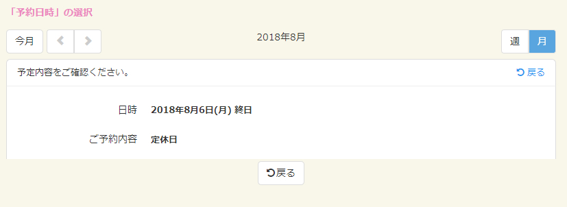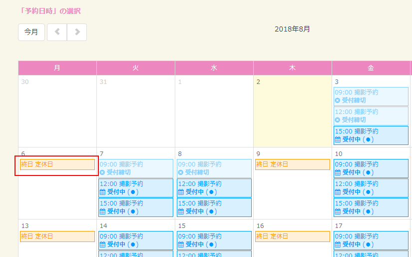 カレンダー上で「定休日」用の受付枠が表示されるようになりました。